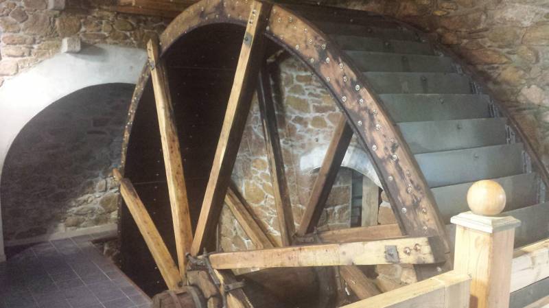Obecnie woda krąży w obiegu zamkniętym. Koło jest wykonane ze 150 letniego drzewa modrzewiowego. Na ścianach i w rogu sali widać zachowane oryginalne elementy starego koła. Koło to prezentuje wybitne wartości historyczne i techniczne. Należy do unikatowych egzemplarzy urządzeń tego typu, z których do dzisiaj zachowały się tylko nieliczne. Zachowały się również elementy starego wału, które stanowią element ekspozycji muzealnej.