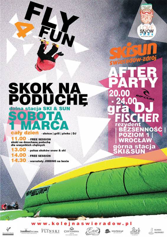 Zapraszamy na FLY 4 FUN Skok na Poduchę już od 11:00 w najbliższą sobotę. A wieczorem na After Party z Dj Fisher na górnej stacji kolei gondolowej!!!