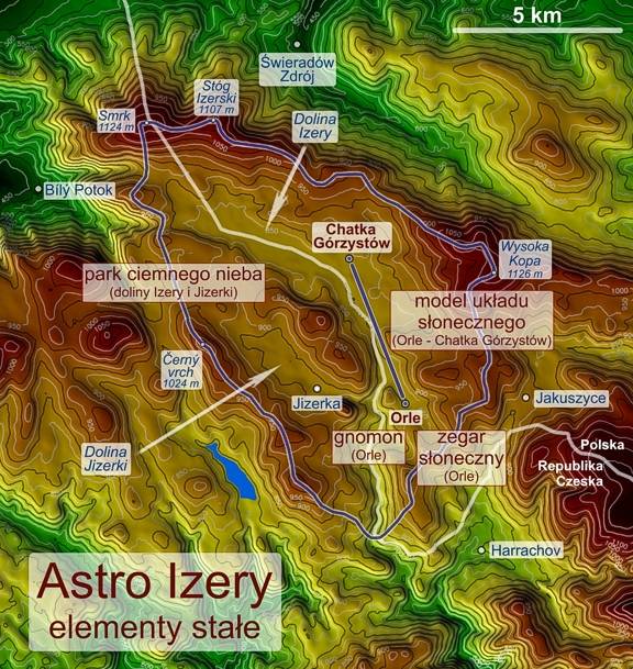 Dzięki projektowi „Astro Izery” Góry Izerskie są miejscem astroturystycznym, w którym walory turystyczne i przyrodnicze Gór Izerskich łączą się z poznawaniem piękna Kosmosu. Na projekt składają się proste instrumenty astronomiczne (gnomon, zegar słoneczny), ścieżka planetarna, park ciemnego nieba oraz imprezy astronomiczne dla szerokiej publiczności.
