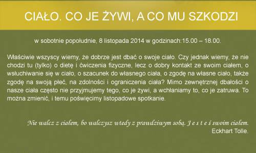 W SOBOTNIE POPOŁUDNIE – 8 listopada 2014 w godz. 15.00 – 18.00.