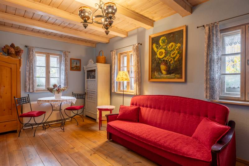 Kilkanaście lat temu, poszukując swojego miejsca na ziemi, trafiliśmy na ponad 100-letnią chatę wiejską, która chociaż pozbawiona była wszelkich wygód cywilizacyjnych, urzekła nas swoim klimatem i położeniem. Kilkuletnim nakładem pracy udało nam się ją odrestaurować i przystosować do komfortowego spędzania czasu.