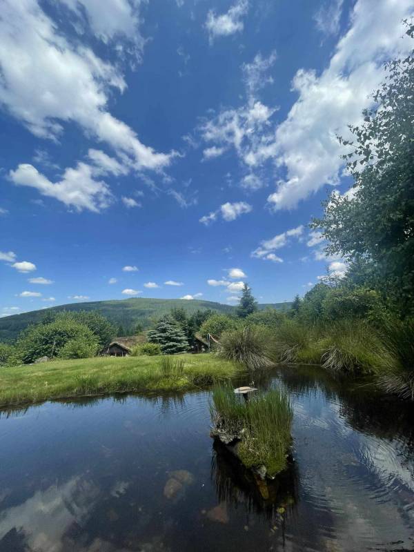 wędliny, pasztety, konfitury i ciasto własnego wypieku. Niczym nie zaburzona przestrzeń, szum potoku,
