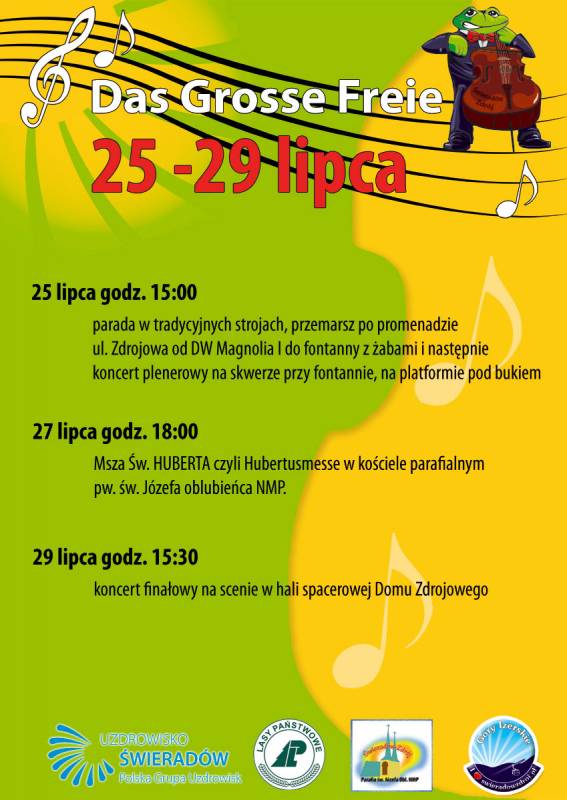 Parada w tradycyjnych strojach i przemarsz po promenadzie ul. Zdrojowa od DW Magnolia I do fontanny z żabami i następnie koncert plenerowy na skwerze przy fontannie, na platformie pod bukiem