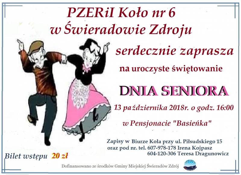 Polski Związek Emerytów, Rencistów i Inwalidów koło nr 6 w Świeradowie-Zdroju serdecznie zaprasza wszystkich seniorów, ze Świeradowa-Zdroju na uroczyste świętowanie Dnia Seniora