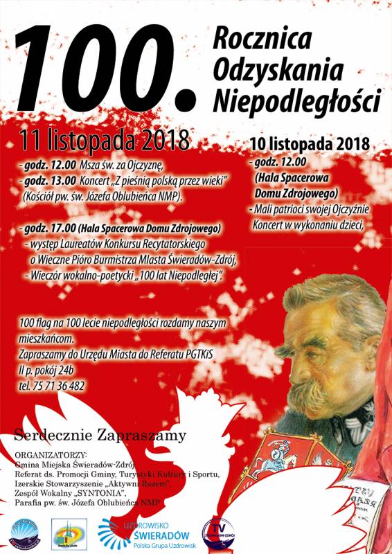 Na 100-lecie Odzyskania przez Polskę Niepodległości rozdamy mieszkańcom naszego miasta 100 biało-czerwonych flag - szczegóły już wkrótce.