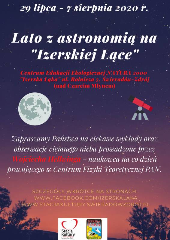 Czwartek (6 sierpnia) godz. 21.10 wykład Galaktyki" oraz obserwacje nieba.