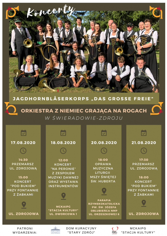 Zapraszamy serdecznie na koncerty Jagdhornbläserkorps „Das Große Freie“ – orkiestry z Niemiec grającej na rogach!