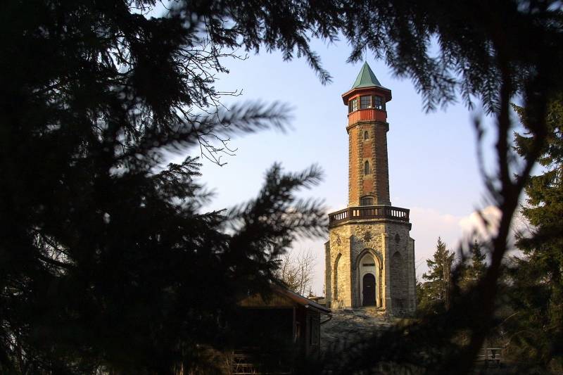 Kamienna wieża widokowa Štěpánka na wierzchu Gwiazda (959 m n.p.m.) leży na Grzbiecie Prziszowickim. Jej wysokość wynosi 24 m, a swą nazwą wspomina arcywojewodę Szczepana. 37 km.