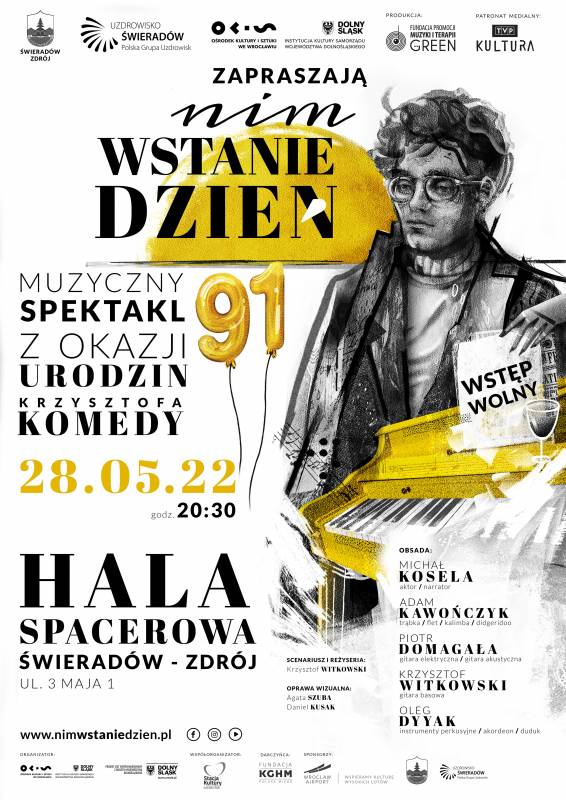 28 maja w Hali Spacerowej w Świeradowie-Zdroju odbędzie się ostatnia, wiosenna odsłona spektaklu „Nim Wstanie Dzień”. Pierwszy z tegorocznych pokazów odbył się w Nadbałtyckim Centrum Kultury w Gdańsku. Zapowiadany spektakl jest dziewiątym z kolei wydarzeniem, wystawionym na przełomie kwietnia i maja. Jest również bardzo uroczysty, ponieważ odbędzie się w pięknej, zabytkowej Hali – architektonicznej perełce Dolnego Śląska. Warto wspomnieć, że tytuł spektaklu pochodzi od ballady skomponowanej przez Krzysztofa Komedę do słów Agnieszki Osieckiej, która stała się motywem przewodnim w filmie „Prawo i Pięść’’.