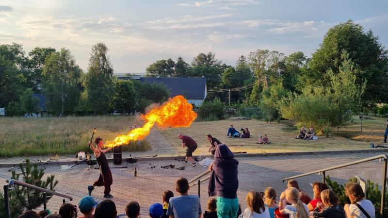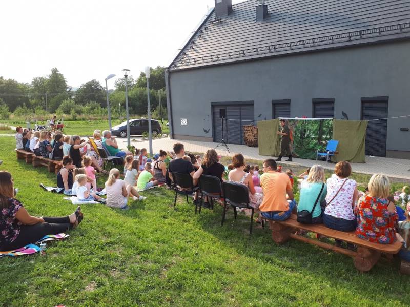 Przy obiekcie znajduje się także teren na którym zorganizować można przedstawienia plenerowe teatralne lub inne i takie już wielokrotnie organizowaliśmy.