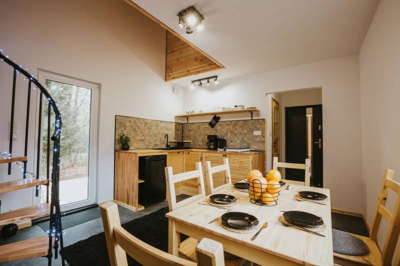Nasze całoroczne domki są doskonale wyposażone. Mimo minimalistycznego stylu znajduje się w nich wszystko, co potrzebne do wygodnego odpoczynku. Funkcjonalny aneks kuchenny i łazienka z kabiną prysznicową zapewniają komfort naszym gościom. Wygodne sypialnie mogą pomieścić aż 6 osób – jest to idealna opcja dla grupy znajomych lub rodziny z dziećmi, która chce spędzić urlop w domkach w Świeradowie-Zdroju .