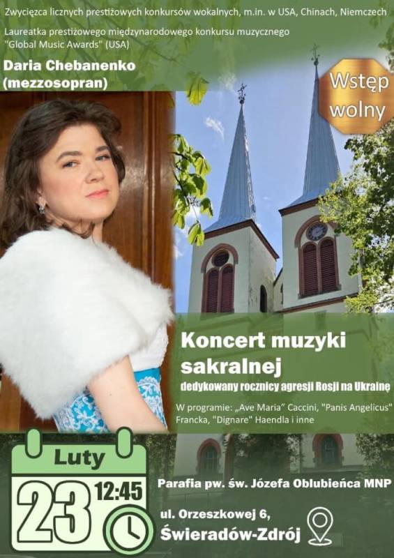 Zapraszamy na wyjątkowy koncert mezzosopranistki Darii Chebanenko, laureatki międzynarodowych konkursów!