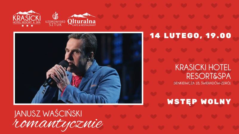 Krasicki Hotel Resort & SPA serdecznie zaprasza Mieszkańców i Gości Świeradowa-Zdroju na ❤ walentynkowy ❤ koncert w wykonaniu Janusza Waścińskiego. Kompozytor i wokalista o aksamitnym głosie zabierze nas w podróż w zaczarowany świat muzyki ❤ Wstęp na koncert jest bezpłatny. Serdecznie zapraszamy!