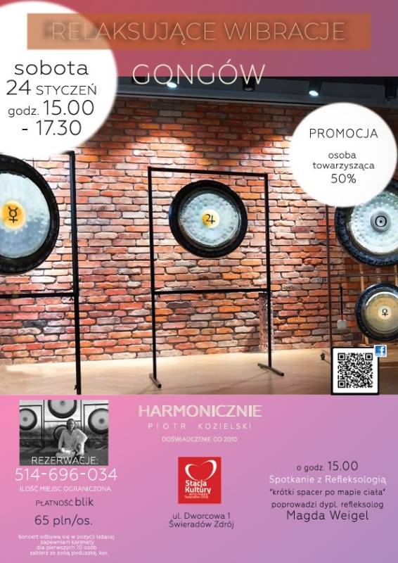 W sobotę 24 stycznia zapraszamy na wyjątkowe spotkanie z dźwiękiem gongów, które wprowadzają w stan głębokiego relaksu i wyciszenia. Wibracje instrumentów działają na ciało i umysł, sprzyjając regeneracji, redukcji stresu i odzyskaniu wewnętrznej równowagi.