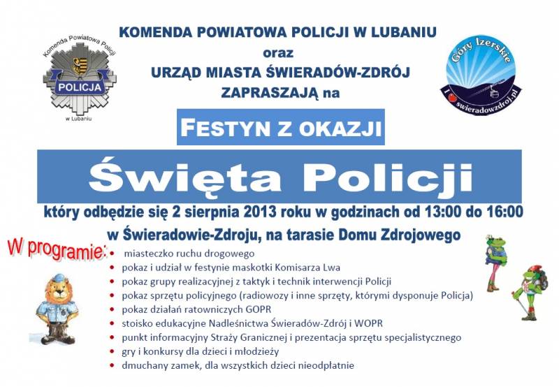 Zapraszamy Państwa do udziału w "Święcie Policji". 2 sierpnia 2013 w godz. 13.00 - 16.00