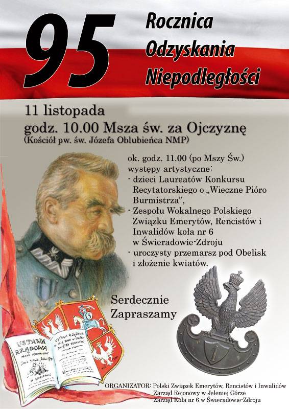 zapraszają na uroczyste obchody 95 rocznicy Odzyskania Niepodległości