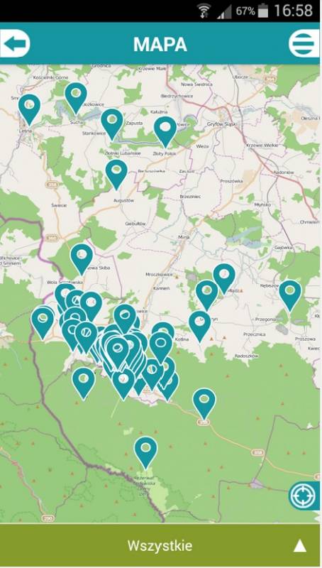 Każde z miejsc można zlokalizować na mapie oraz wyznaczyć trasę dojazdu za pomocą aplikacji zewnętrznych.