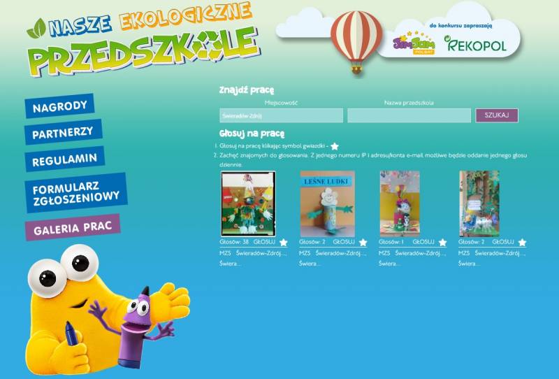 - wybrać jedną z prac naszych przedszkolaków - aby to zrobić, wystarczy wpisać nazwę miejscowości w odpowiednią rubryczkę i nacisnąć ikonkę SZUKAJ,