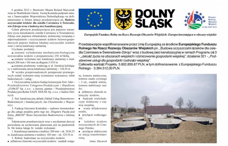 pn.: Budowa oczyszczalni ścieków dla osiedla Czerniawa w Świeradowie-Zdroju wraz z budową sieci kanalizacyjnej