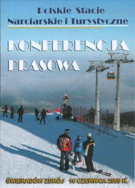 16 czerwca o godz. 16.30 w Świeradowie-Zdroju na górnej stacji kolei gondolowej, odbędzie się konferencja prasowa pn. Polskie Stacje Narciarskie i Turystyczne. Głównym tematem będzie powstanie Stowarzyszenia Polsie Stacje Narciarskie i Turystyczne - cele organizacji oraz bariery hamujące rozwój branży narciarskiej i turystycznej.
