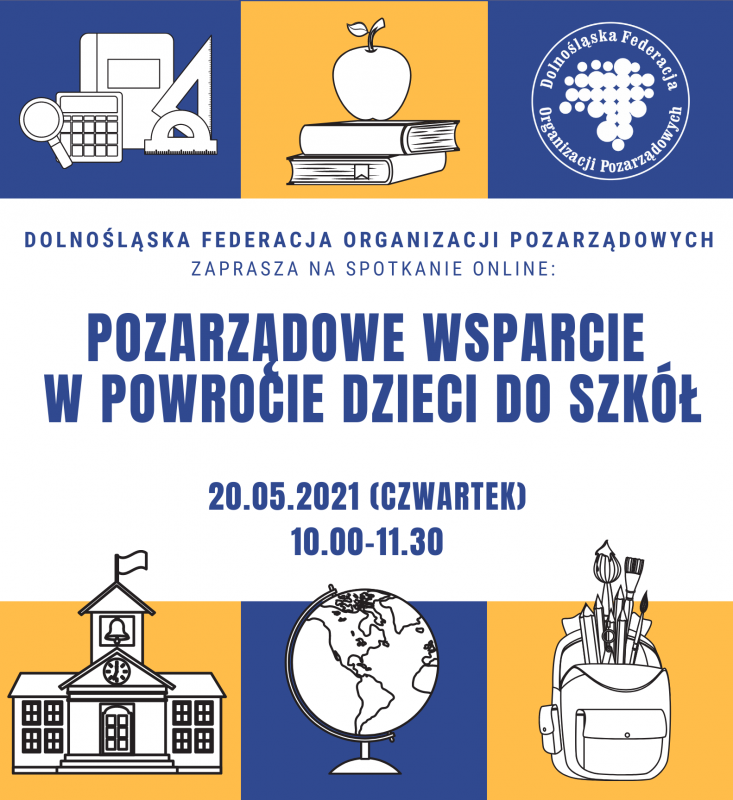 Dolnośląska Federacja Organizacji Pozarządowych zaprasza na spotkanie online "Pozarządowe wsparcie w powrocie dzieci do szkół" .