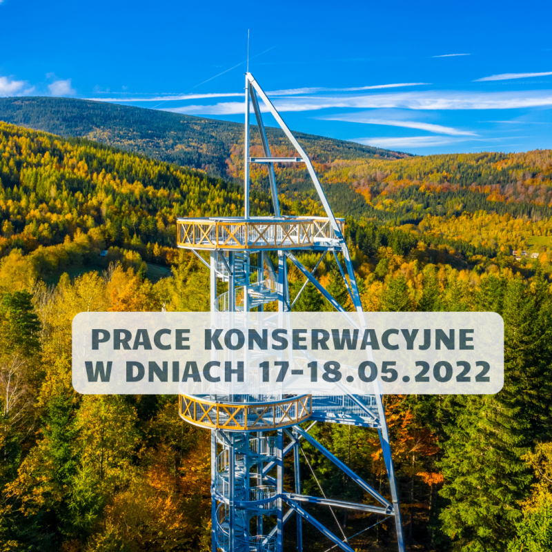 W dniach 17-18.05.2022 r. wieża widokowa na górze Młynica zostanie czasowo wyłączona z obsługi ruchu turystycznego celem wykonania prac konserwacyjnych obiektu.