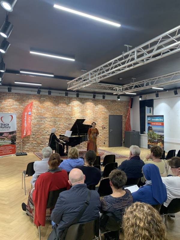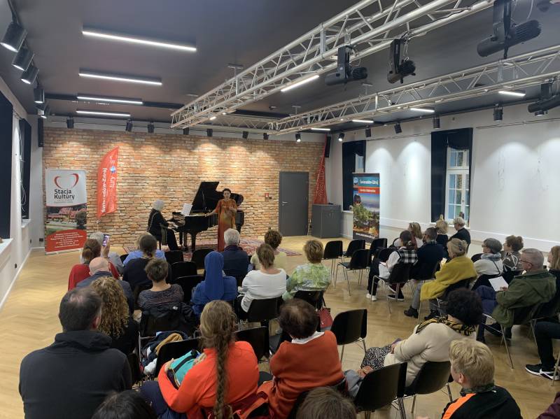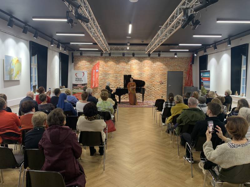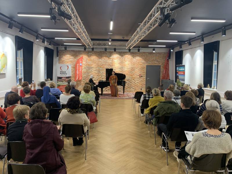 Tym razem, 15 października w sali widowiskowej Stacji Kultury mieliśmy okazję wysłuchać dwóch wybitnych artystek – Olgi Pasiecznik - śpiewaczki pochodzenia ukraińskiego (sopran); poświęcającej szczególną uwagę barokowym i klasycznym operom, muzyce francuskiego impresjonizmu, rosyjskim i ukraińskim pieśniom, muzyce oratoryjnej oraz kompozycjom współczesnym oraz Ewy Pobłockiej - pianistki i pedagog, laureatki licznych konkursów pianistycznych . Licznie zgromadzona publiczność zachwyciła się artystycznym kunsztem prezentowanym przez obydwie artystki nagradzając je gromkimi brawami!