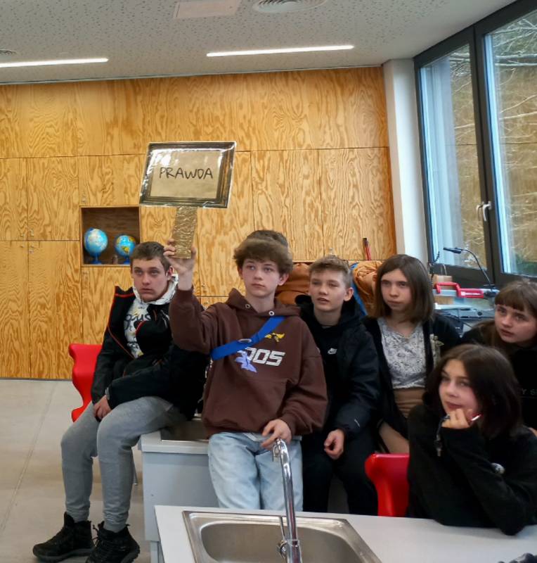 Uczniowie siódmej i ósmej klasy z Czerniawy stanęli ze sobą w szranki a polem rywalizacji była wiedza o sąsiadujących ze sobą Górnych Łużycach i Śląsku. Młodzież miała do wykonania szereg zadań, w których liczyła się nie tylko znajomość historii regionu, ale również refleks, umiejętność pracy w zespole, biegłość w czytaniu mapy, sprawność fizyczna i spostrzegawczość! Walka była wyrównana, zadecydowały pojedyncze punkty i ostatecznie zwyciężyła drużyna Górnych Łużyc (klasa 8), której serdecznie gratulujemy! Na zakończenie turnieju kapitanowie obu drużyn, czyli Tymek i Mikołaj, uścisnęli sobie dłonie i przecięli wstęgę na symbolicznej granicy Górnych Łużyc i Śląska - na mostku na Czarnym Potoku, a następnie odsłonili tablicę informującą o tejże granicy.