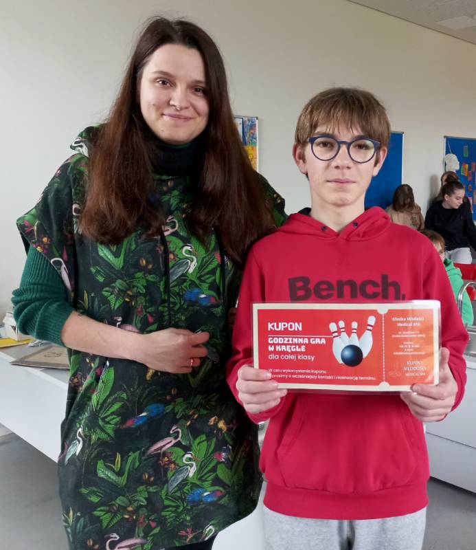 Nagrodą w turnieju był kupon na klasowe wyjście do Parku linowego „Na Stoku”. Dziękujemy Właścicielom Parku Linowego za hojność i ufundowanie tak atrakcyjnej nagrody. Podziękowania kierujemy również do Klinika Młodości Medical SPA, która również hojnie wsparła naszą inicjatywę i ufundowała wspaniałą nagrodę za zajęcie drugiego miejsca, czyli kupon na klasowe wyjście na kręgle!