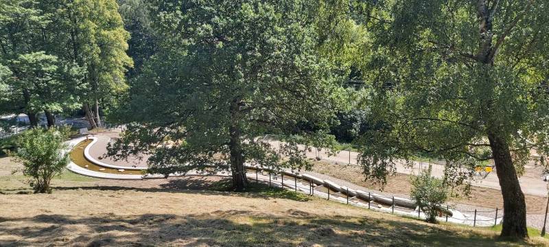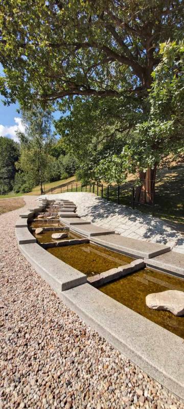 • Budowa sztucznego potoku z płynącą wodą wraz z niezbędną infrastrukturą, aranżacja terenu, utwardzone wodoprzepuszczalne ścieżki z nawierzchnią typu kamienny dywan, mała architektura, nowe nasadzenia zieleni średniej i wysokiej, uporządkowanie terenu, założenie trawnika, oświetlenie terenu.