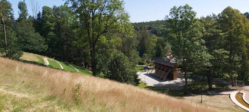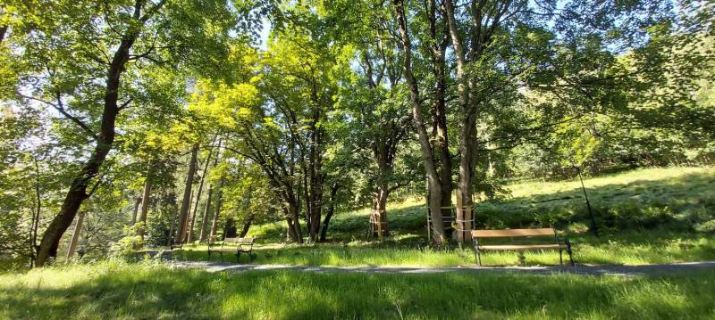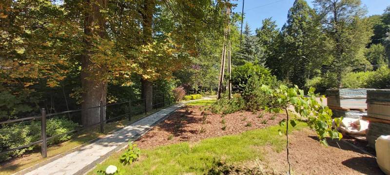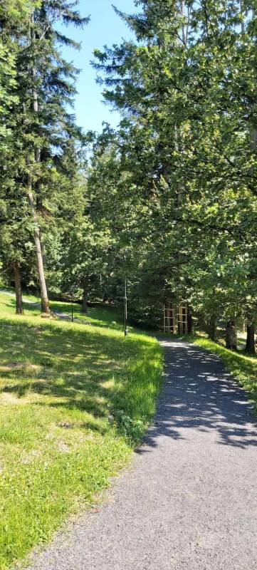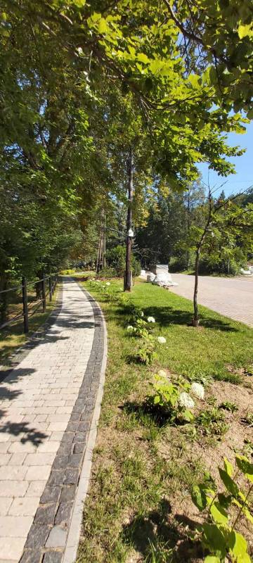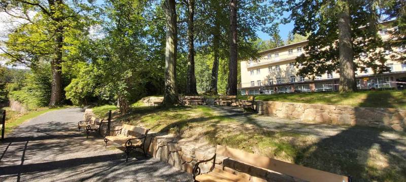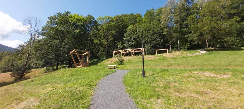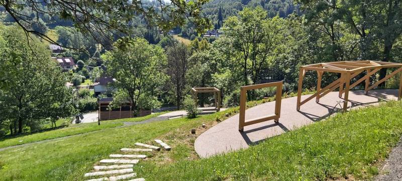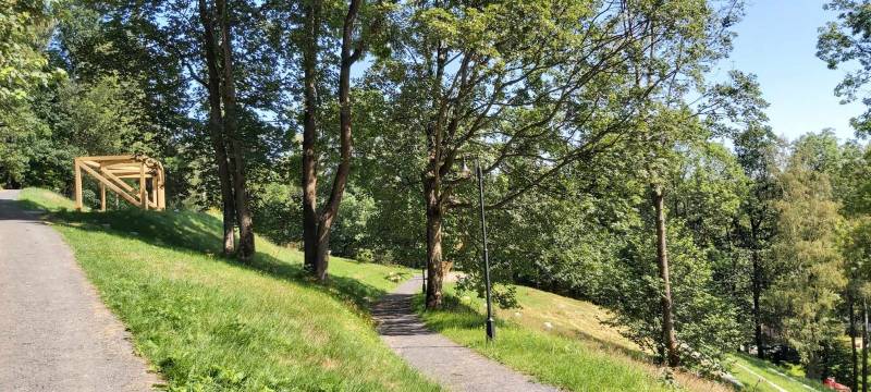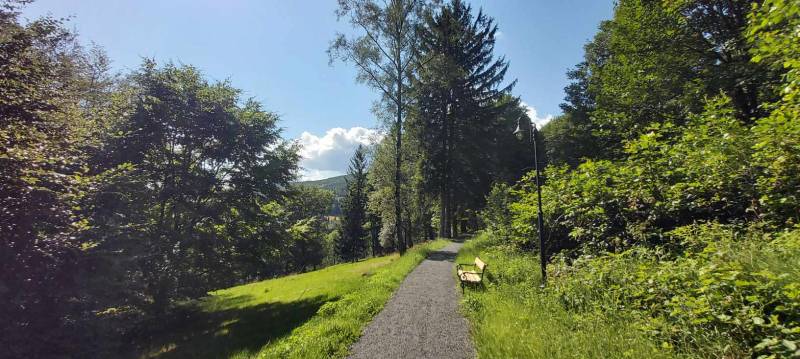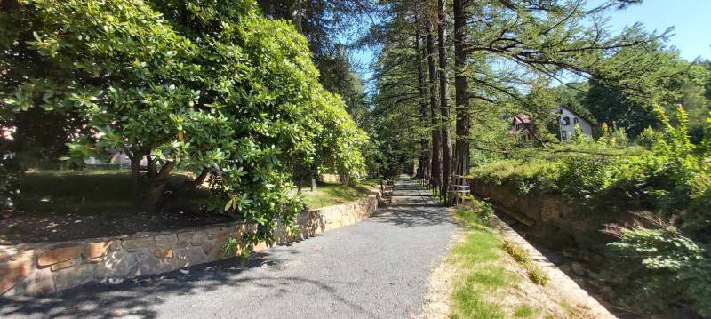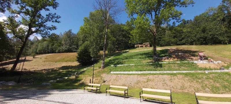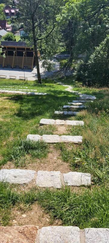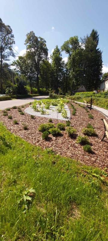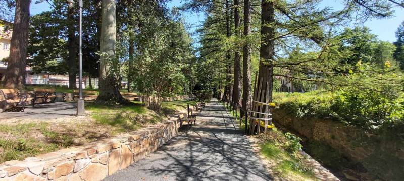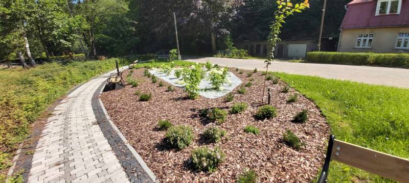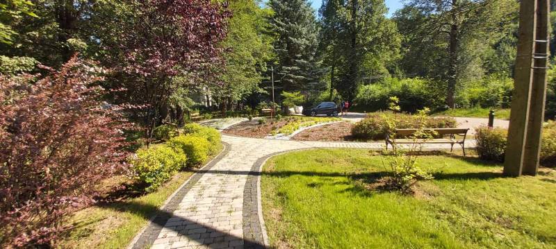 - Przebudowa parku uzdrowiskowego: remont i utwardzenie, przebudowa i budowa alejek parkowych w postaci utwardzonych ciągów pieszych z nawierzchnią żwirową, z punktem wjazdowym na ścieżkę rowerową, budowa utwardzonych placów pod elementy małej architektury z utwardzoną przepuszczalną nawierzchnią typu kamienny dywan, uporządkowanie zieleni, założenie łąk kwietnych, mała architektura (pergola duża, ramka krajobrazowa, ramka krajobrazowa- ławka, huśtawka krajobrazowa, wypoczynkowe hamaki (sezonowe), wypoczynkowe siatki linowe (całoroczne), ławki, rzeźby, schody terenowe z kamienia łupkowego lub kwarcowego, amfiteatr terenowy z siedziskami z kamienia murowego i nawierzchnią trawiastą, wymiana ogrodzenia na obszarze działki, oświetlenie terenu.