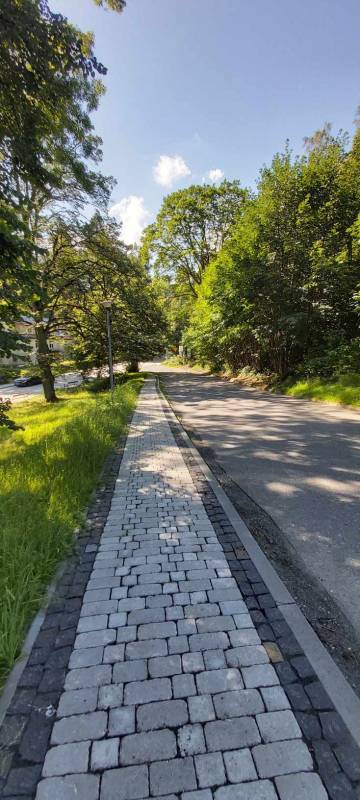 - Przebudowa placu zabaw i skweru: budowa nowych alejek z elementami małej architektury, założenia zieleni ozdobnej oraz uporządkowanie istniejącego terenu z samosiejek i połączenie funkcjonalne z obszarem placu zabaw poprzez budowę odpowiedniego połączenia komunikacyjnego w formie ciągu pieszego z przejściem przez ulicę, przebudowa i utwardzenie ciągów pieszych z kostki betonowej kolor srebrno-szary stylizowanej na kostkę brukową, aranżacja zieleni, uporządkowanie zieleni, założenie trawnika, montaż ławek i koszy, zewnętrzna instalacja oświetleniowa z latarniami wys.4m, budowa schodów terenowych z kostki betonowej w ciągu pieszym.