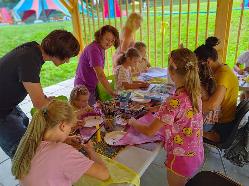 Ponadto, najmłodsi uczestnicy naszego wydarzenia mogli wziąć udział w warsztatach plastycznych. Pod okiem Agnieszki Andrzejczak-Wiaderek z lubańskiej Pracownia artystyczna "Świece z sercem" powstawały wielobarwne wzory na bandanach. Z kolei wraz z Katarzyną Rzeczkowską z Izerska Majstrownia mogli stworzyć unikatową biżuterię bądź aromatyczną świeczkę z węzy pszczelej.