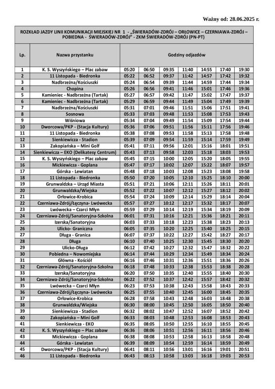 Zakład Komunikacji Miejskiej w Świeradowie-Zdroju informuje, iż z dniem