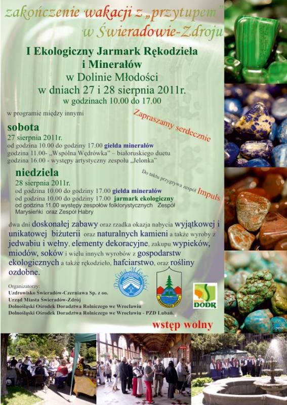 Ponadto w niedzielę 28 sierpnia w Hali Spacerowej i na tarasach przed domem Zdrojowym odbędzie się ekologiczny jarmark rękodzieła – i tutaj wystawcy nie zawiodą – produkty ekologiczne, Rękodzieła, Miody i występy zespołów folklorystycznych .
