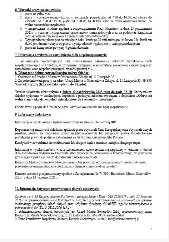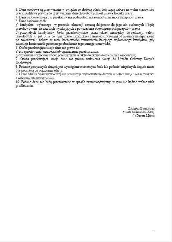 Informacja o wyniku naboru zostanie opublikowana w Biuletynie Informacji Publicznej Urzędu Miasta Świeradów-Zdrój.