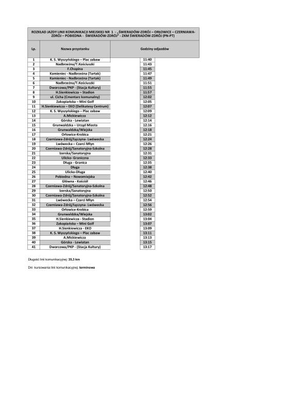 autobus miejski linii nr 1 o godzinie 11:40 będzie realizował dodatkowy kurs