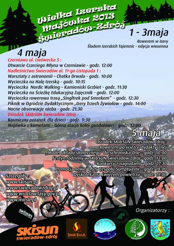 5 maja godz. 10.00 - ROWEREM PO ŚCIEŻCE DYDAKTYCZNEJ - "Modelu układu słonecznego" do schroniska Orle - start Ośrodek Ski&Sun