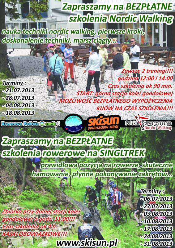 Zapraszamy na bezpłatne szkolenia NORDIC WALKING - nauka techniki nordic walking, pierwsze kroki, dokonalenie techniki, marsz ciągły...