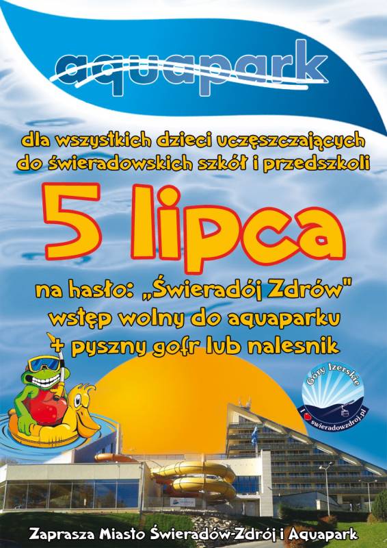 5 lipca br. na hasło :"Świeradój Zdrów" wstęp wolny do aquaparku + pyszny gofr lub naleśnik.