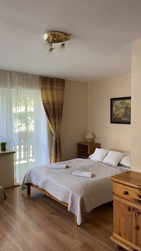Oferujemy Państwu ładne, wygodne, czyste i przyjemne pokoje 2,3,4-osobowe z pełnym węzłem sanitarnym oraz balkonami. Budynek położony w centrum naszego miasteczka, tuż przy deptaku i Parku Zdrojowym.