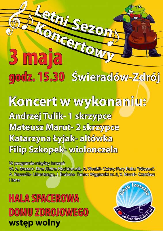 wystąpią: Andrzej Tulik- 1 skrzypce Mateusz Marut- 2 skrzypce Katarzyna Łyjak- altówka Filip Szkopek- wiolonczela
