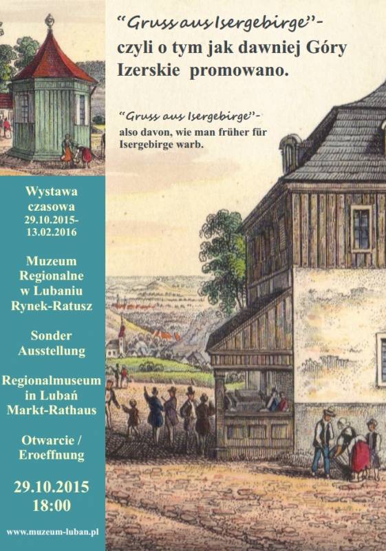 Muzeum Regionalne w Lubaniu serdecznie zaprasza na otwarcie wystawy "Gruss aus Isergebirge-czyli o tym jak dawniej Góry Izerskie promowano. Wernisaż odbędzie się 29 października 2015 r. (czwartek) o godzinie 18:00.
