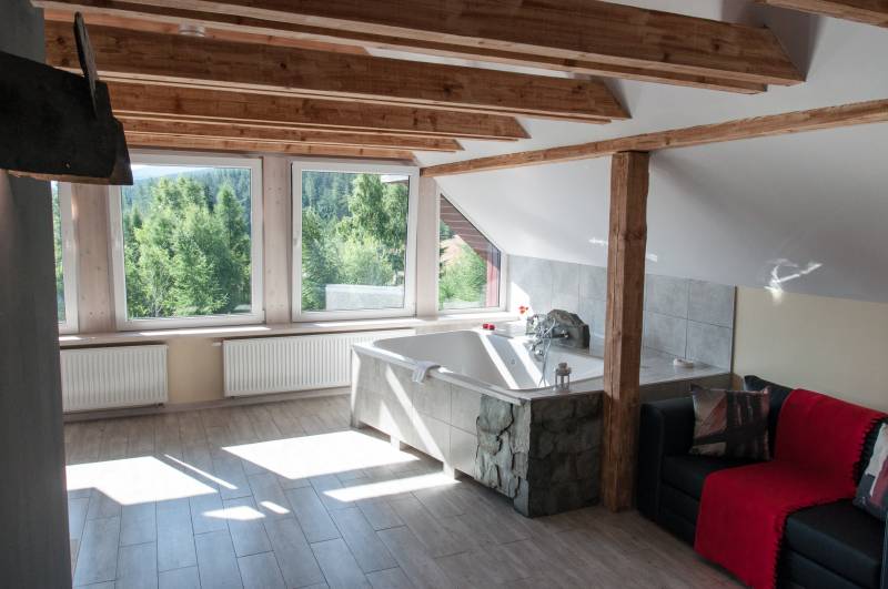 łonie natury. Z każdego okna można podziwiać malownicze, górskie pejzaże, zapierajace dech w