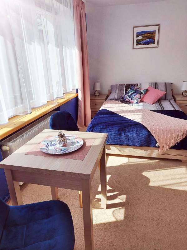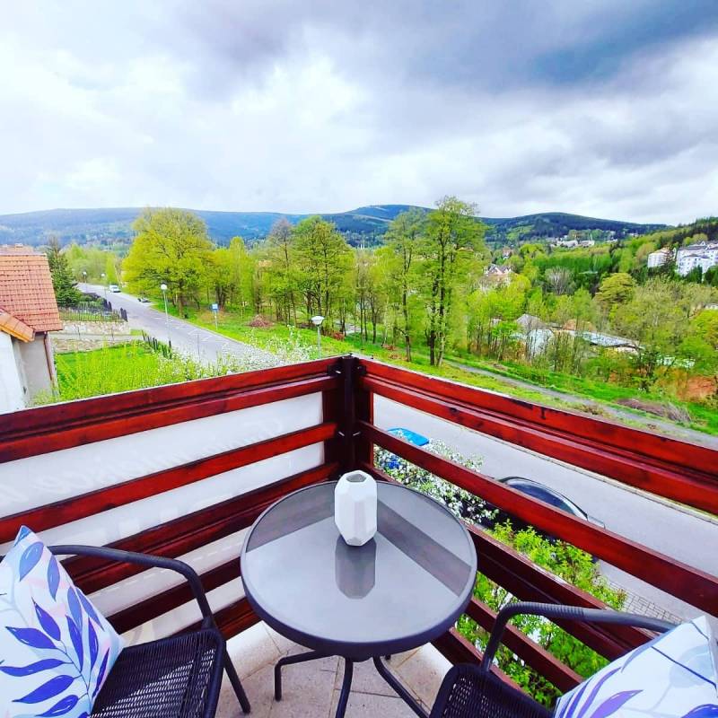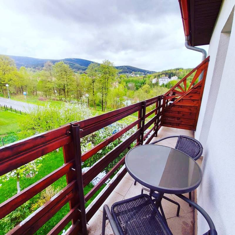 Zapraszamy wszystkich miłośników gór oraz sportów zimowych do komfortowo urządzonych, świeżo wyremontowanych pokoi z własnymi łazienkami oraz bezprzewodowym internetem wi-fi w atrakcyjnej cenie. Obiekt jest po remoncie, pokoje są odświeżone, nowo umeblowane, a poprzez dołożenie łazienek zyskały lepszą funkcjonalność. Do dyspozycji Gości udostępniamy profesjonalnie wyposażony aneks kuchenny do samodzielnego przygotowania przepysznych posiłków oraz dań, również z nowym umeblowaniem oraz sprzętem. W słoneczne dni mogą Państwo zaznać relaksu w ogrodzie, rozkoszując się przepieknym widokiem na Stóg Izerski. Dom znajduje się w malowniczej oraz bardzo spokojnej części Świeradowa-Zdroju na zboczu Sępiej Góry, gdzie cisza i spokój pozwolą Państwu odpocząć od codziennych spraw i obowiązków.Z okien pokoi oraz tarasów roztacza się przepiękna panorama miasta oraz widok na Stóg Izerski z koleją gondolową. W pobliżu znajdują się liczne szlaki turystyczne piesze i rowerowe oraz punkty widokowe, zachęcając tym samym do aktywnego spędzenia wypoczynku.