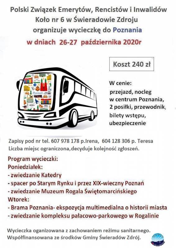 przejazd, nocleg w centrum Poznania, 2 posiłki, przewodnik, bilety wstępu i ubezpieczenie