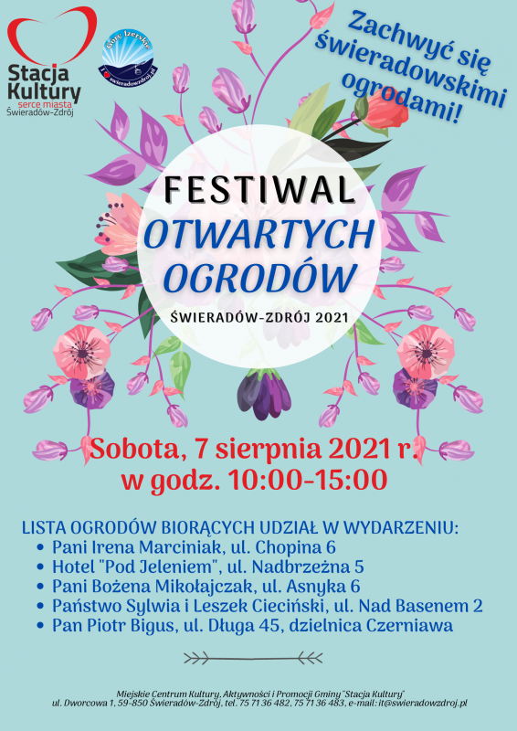 W tym roku właściciele czterech posesji prywatnych oraz jeden przedsiębiorca, zapraszają Państwa do miłego spędzenia czasu w swoich ogrodach.