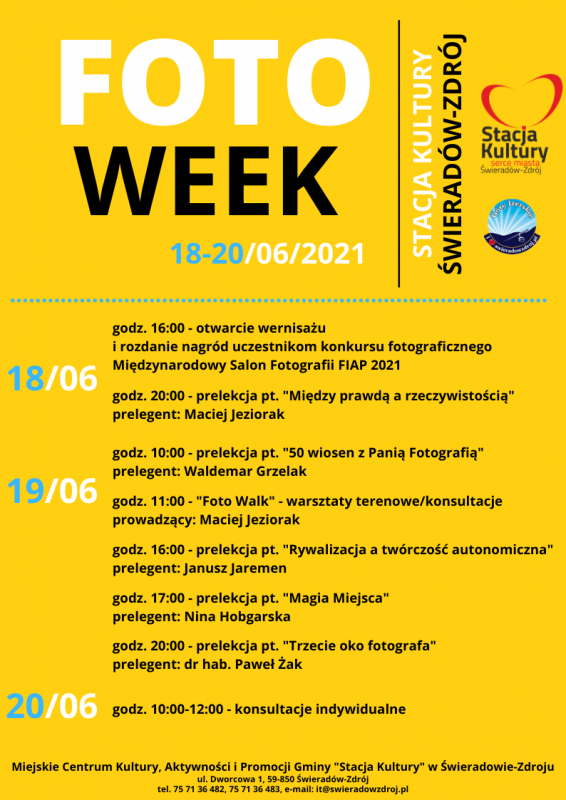 19/06 godz. 10.00 - prelekcja: „50 wiosen z Panią Fotografią”, prelegent: Waldemar Grzelak / Stacja Kultury