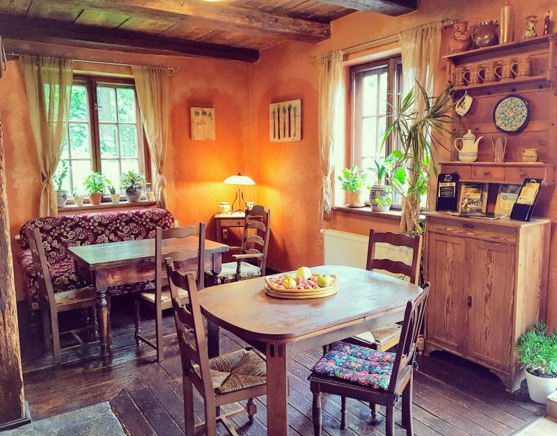 Wszystkie nasze pokoje mają łazienki. Dom posiada karczmę i taras gdzie można zjeść nasze śniadania oraz swoje posiłki. Goście mają do dyspozycji kuchnię, duży ogród z murowanym grillem i miejscem na ognisko. Jest też sala taneczna lub konferencyjna na większe imprezy (urodziny, małe wesela, itd).