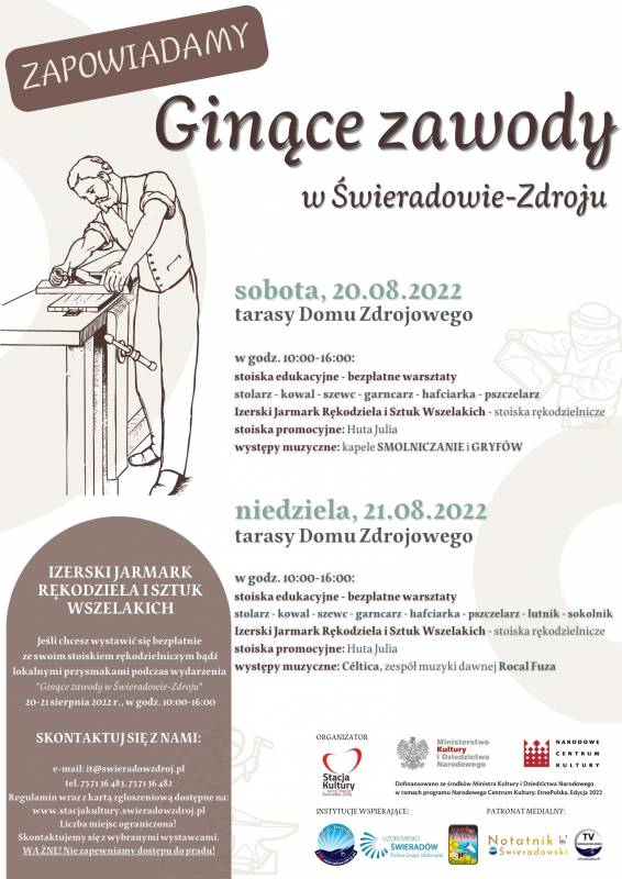 W ramach programu EtnoPolska, nasze Miejskie Centrum Kultury, Aktywności i Promocji Gminy "Stacja Kultury" otrzymało dofinansowanie w wysokości 24 tys. zł na realizację projektu "Ginące zawody w Świeradowie-Zdroju".